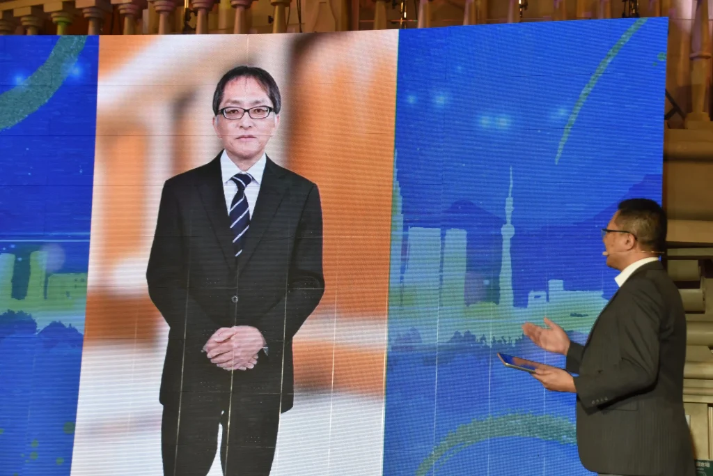 またその後、デジタルヒューマンとして常務理事の前田康行氏がディスプレイ上に登壇。ショーケースの詳細な内容やユニークベニューについて、藤村氏の質問に答えた。