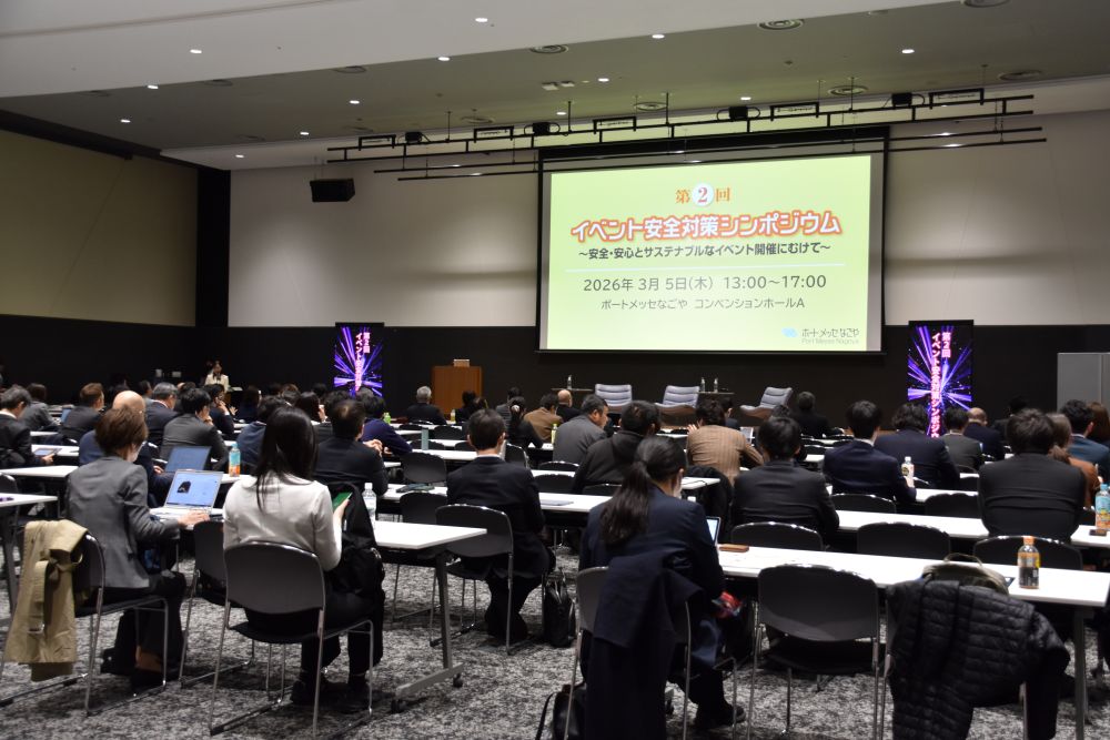 ポートメッセなごやMICEコンソーシアムは3月5日「イベント安全対策シンポジウム」を、ポートメッセなごや・コンベンションホールAで開催した。2回目となる今回は、イベントの安全対策とサステナビリティをテーマに取り上げ、イベント主催者や支援企業、施設会場など173名が参加。当日のようすと講演をレポートする。