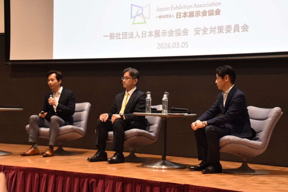 /日本展示会協会・安全対策委員会(メッセフランクフルトジャパン 代表取締役社長 梶原靖志 氏、日経イベント・プロ 執行役員 イベント事業担当補佐兼企画・イベントDX推進担当補佐 安藤英賢 氏、RX Japan 会場運営本部/制作本部 本部長執行役員 川村知哉 氏)
