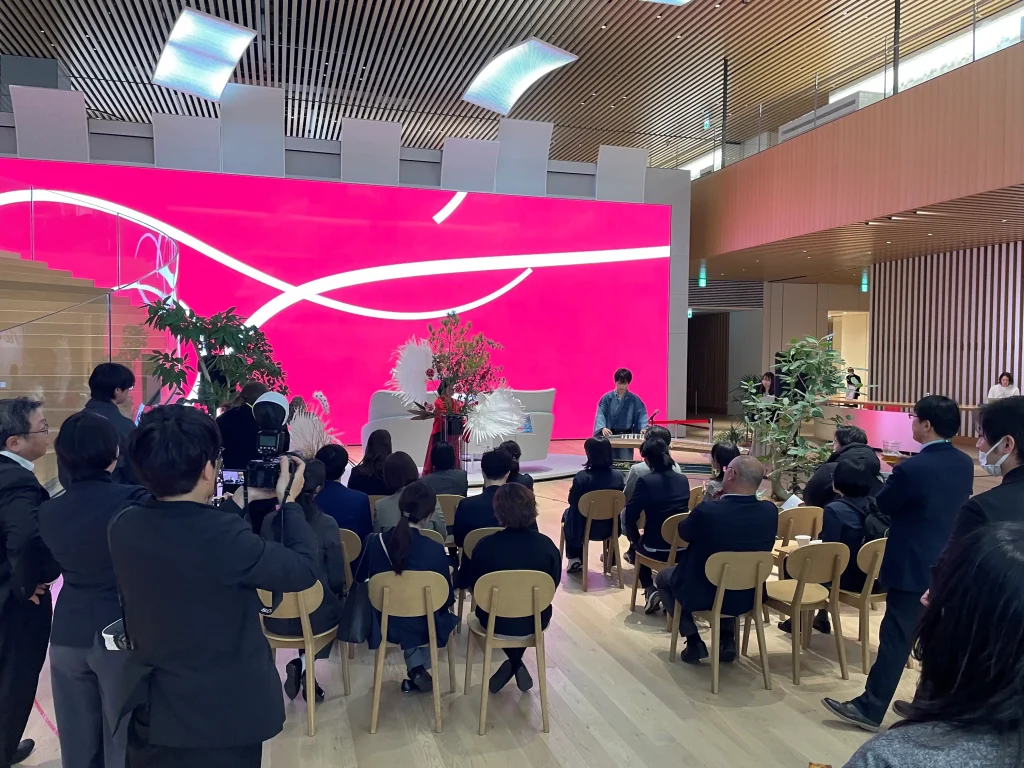 交流会は会場から徒歩圏内にある「Shiseido Beauty Park」にて行われ、琴演奏と華道によるパフォーマンスも展開された。
